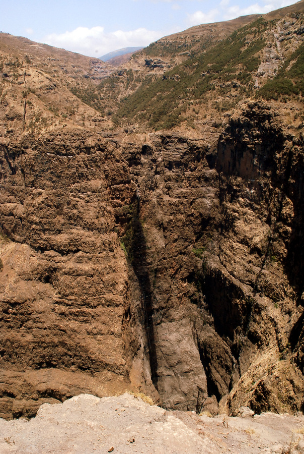 Nach der Mittagspause in einem Straßennest, in dem aber immerhin die ungeteerte Straße mit Wasser besprenkelt wurde, wurde es dann richtig spektakulär, als sich die Straße hinauf in die Simien Mountains schlängelte.