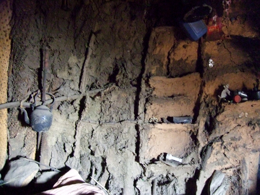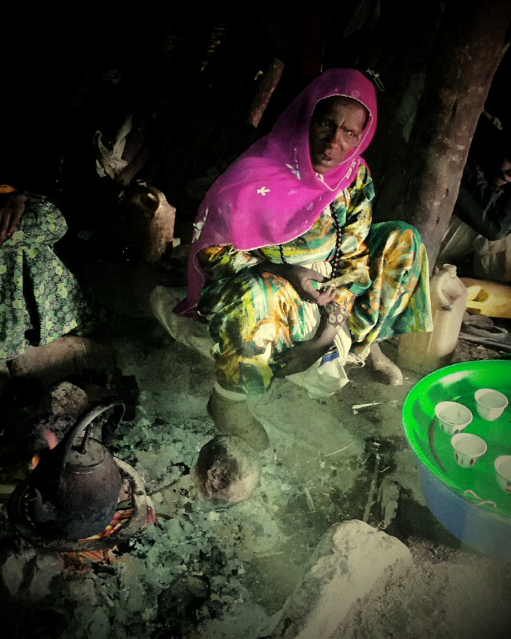 Kurz vor dem Geech Camp machten wir Station in diesem sehr, sehr urigen „Café“. Es handelte sich um die Wohnhütte einer siebenköpfigen Familie. Die Wände waren grob mit Lehm verputzt, der Boden bestand aus gestampftem Lehm, die Menschen schliefen auf Holzemporen, darunter hausen zeitweilig Ziegen, Hühner und Schafe. Gekocht wird auf offenem Feuer, irgendwelchen Luxus (außer einer alten Ausgabe von „Illu der Frau“, siehe Bilder) hatte die Familie offenbar nicht. Hier haben wir das einzige Mal in den 3 Wochen die vollständige äthiopische Kaffeezeremonie mitverfolgt: Waschen der grünen Kaffeebohnen, Rösten, Mahlen, Brühen. Heraus kommt ein Kaffee mit einem sehr deutlichen Röstaroma, das man so nicht kennt. Ich fand´s großartig.