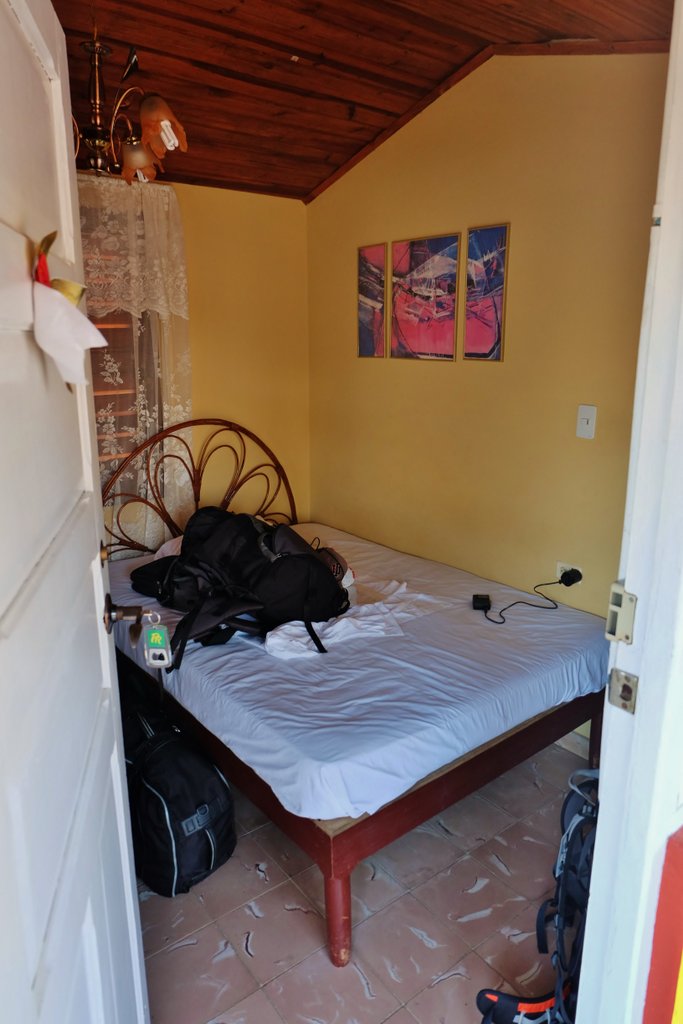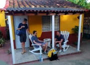 Spät am Abend kamen wir in Viñales an und machten Quartier in der wieder mal sehr farbenfrohen und sympathischen „Casa Oscar“ (uneingeschränkt zu empfehlen) nahe der Hauptstraße von Viñales. Da alle Restaurants schon geschlossen waren, landeten wir in einer Art kubanischem Späti, der an einen winzigen Park mit Bänken und Tischen grenzt. Auch dort war die Küche geschlossen, aber es gab noch irgendwelche Chips und Kekse und ein kaltes Feierabend-Bier.
