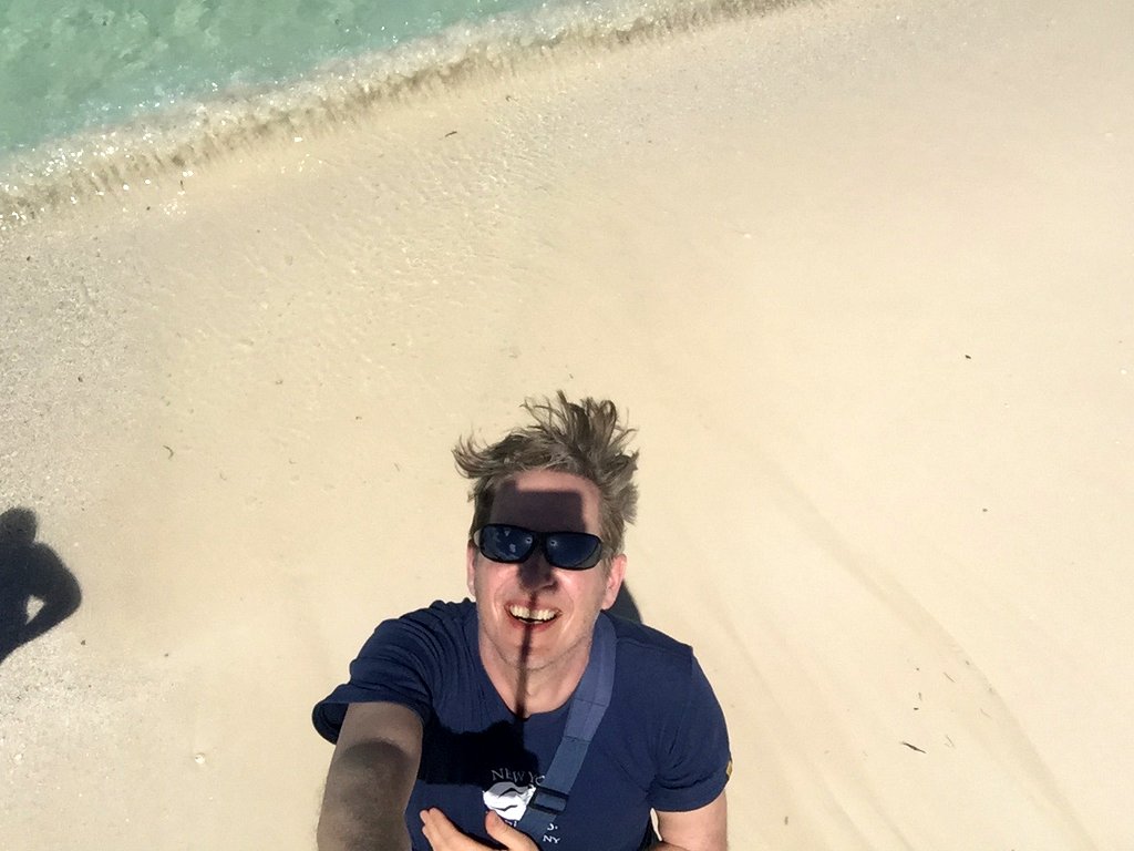Da keiner von uns eine große Befriedigung daraus zieht, stundenlang einfach nur in der Sonne zu liegen, machten Karsten, Jürgen und ich einen Spaziergang am Strand Richtung Osten, wo das Wasser noch türkiser aussah. Dieser harmlose Spaziergang wurde dann ein relativ kurioses Erlebnis. Denn irgendwann reicht der Wald bis direkt ans Wasser heran. Offenbar war hier im Zuge eines Hurrikans vor ein paar Jahren das Meer großflächig in den Wald hineingelaufen, das Salzwasser versickerte dort und ließ den Großteil der ufernahen Bäume absterben. Danach dörrte die Sonne die toten Bäume aus, bis sie knochentrocken waren. Und dann konnten wir kommen und mit einer Hand armdicke Baumstämme einfach so umknicken. So ungefähr muss sich jemand mit Superkräften fühlen. :-) Keine Sorge, der Wald steht noch.