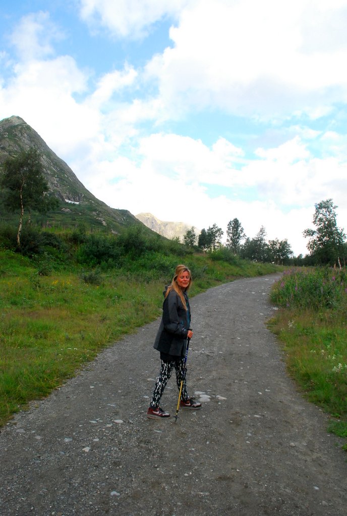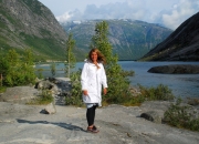 Von Runde fuhren wir am späten Nachmittag „noch eben schnell“ ins Oldedalen, da mir die Gegend und der Campingplatz dort (Gryta Camping) von meiner Reise 2010 noch in bester Erinnerung geblieben waren. Diese Fahrt von ca. 2h bewies wieder einmal den Abwechslungsreichtum von Norwegen: Eben noch auf den Klippen einer waldlosen Insel, dann an verschiedenen kleineren Fjorden, ein kurzes Stück über ein Fjell mit Serpentinen und dann ins Oldendal mit seinem türkisfarbenen See und den Eisfeldern auf 3 Seiten. Am Ende des Oldedalen liegt der Briksdalsbreen, den hatte ich aber 2010 schon besucht, daher schenkten wir uns diesen einen Gletscher.