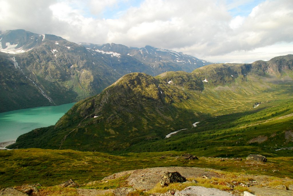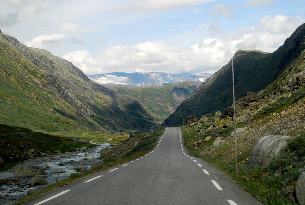 Das Sognefjell ist wahrscheinlich das bekannteste Fjell in Norwegen, vor allem weil dort oben, im südlch der Straße gelegenen Jotunheimen („Heim des Riesen Jotun“) die höchsten Berge Norwegens stehen. Die ca. 40km auf der Straße sind eine einzige Augenweide, überall sind Gletscher, Berge und Seen (sogar mit kleinen Eisbergen) zu bestaunen.